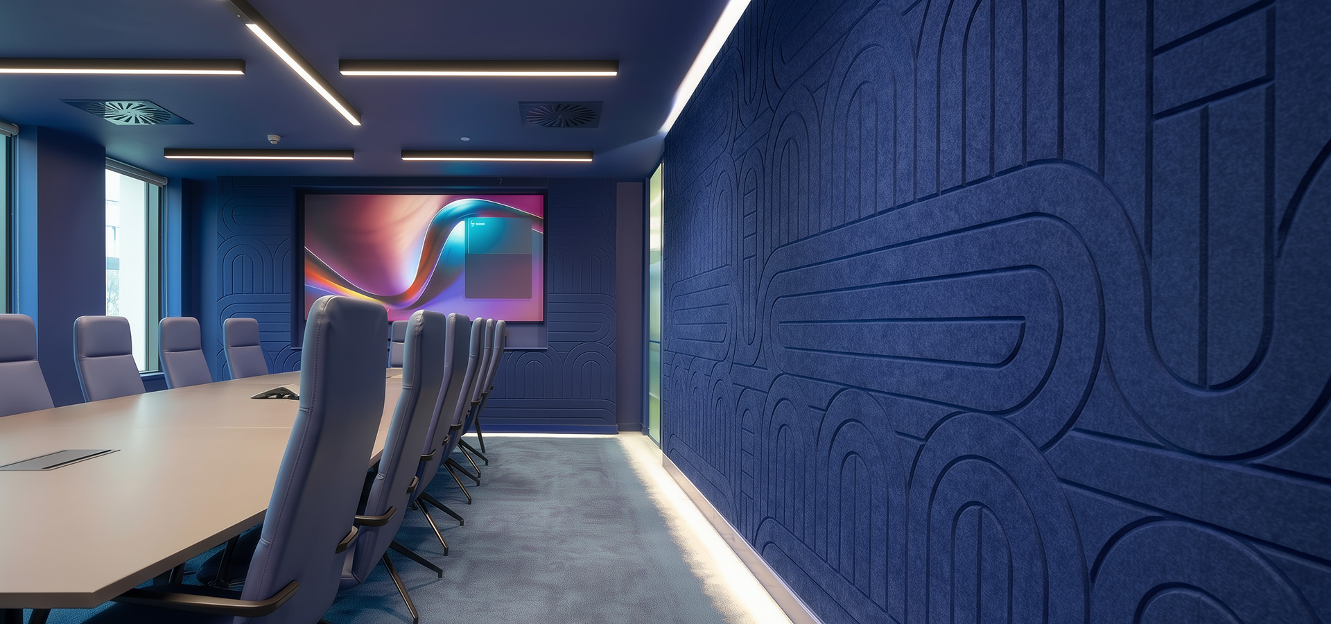 별도의 소품 없이 패널 시공만으로도 압도적인 존재감을 드러내는 포인트 월(Point Wall)을 완성하며, 동시에 최상의 음향 컨디션 제공.