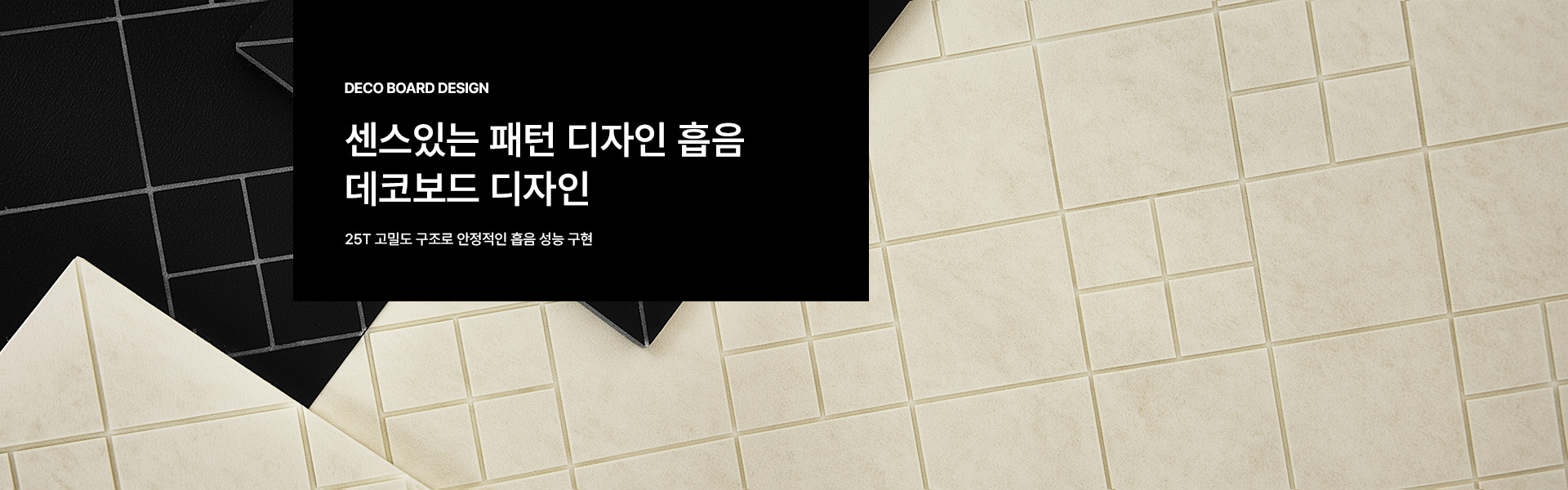 25T 고밀도 구조가 선사하는 안정적인 흡음 성능과 트렌디한 패턴의 만남. 공간에 시각적인 즐거움을 더하는 흡음보드