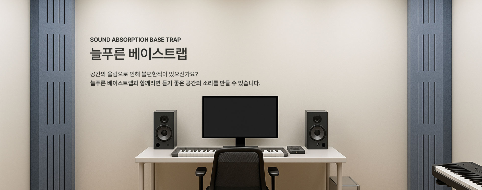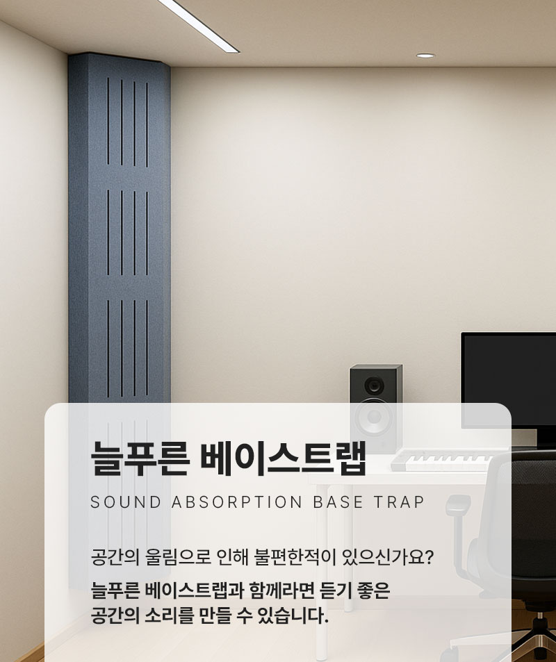 늘푸른 베이스트랩은 저주파 공명을 효과적으로 제어하여 공간의 명로도와 안정감을 높여줍니다.